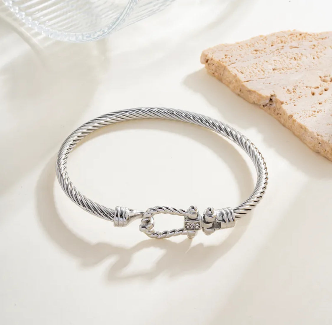 18K Gold Plated Geometric Stainless Steel Bangle – Silver, Gold & Two-Tone Waterproof Bracelet