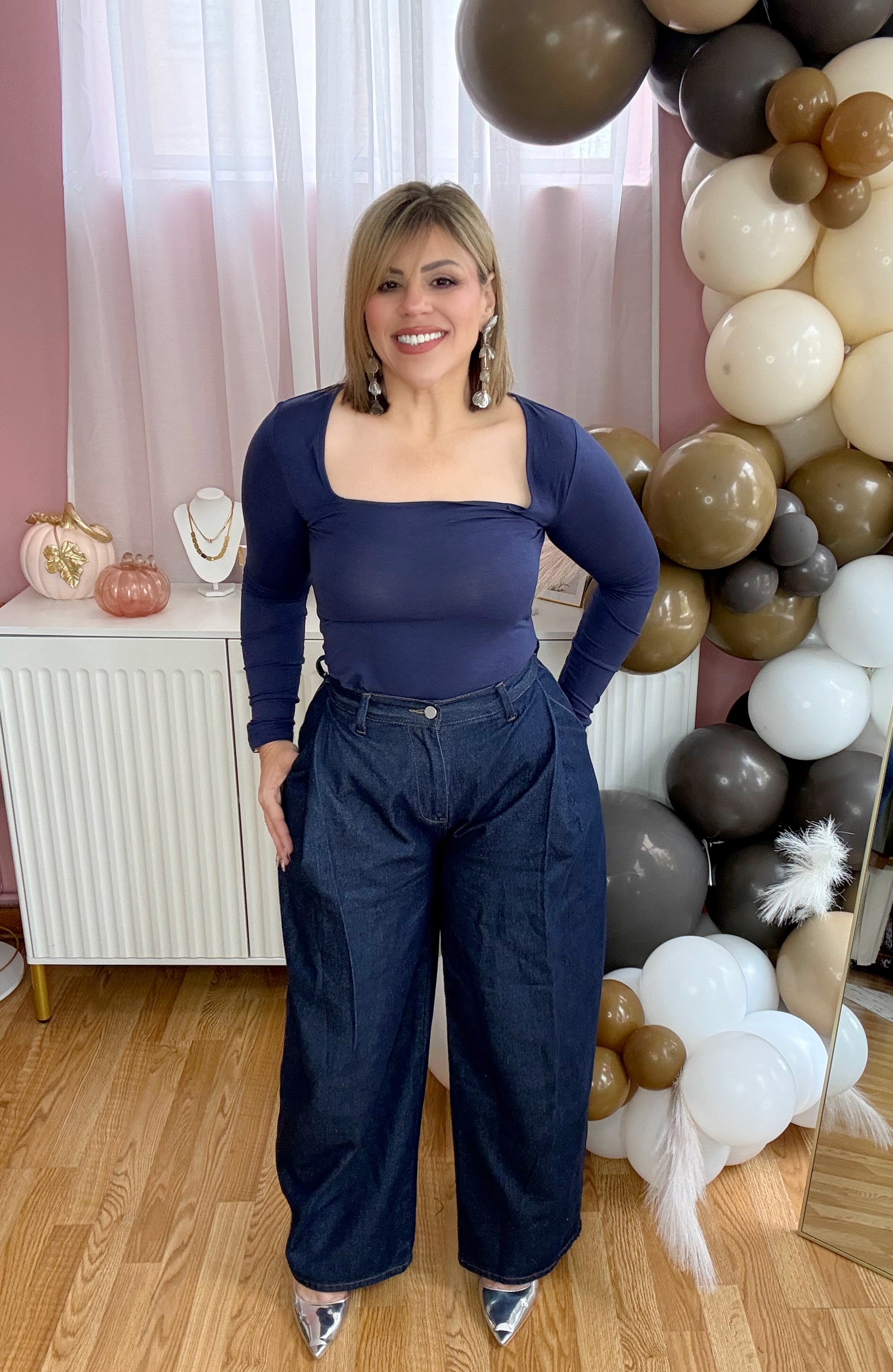 Meet The Noelia Bodysuit – Dark Night, your new go-to essential for effortless layering and timeless sophistication. Designed with a sleek square neckline and long sleeves, this bodysuit perfectly blends comfort and elegance.